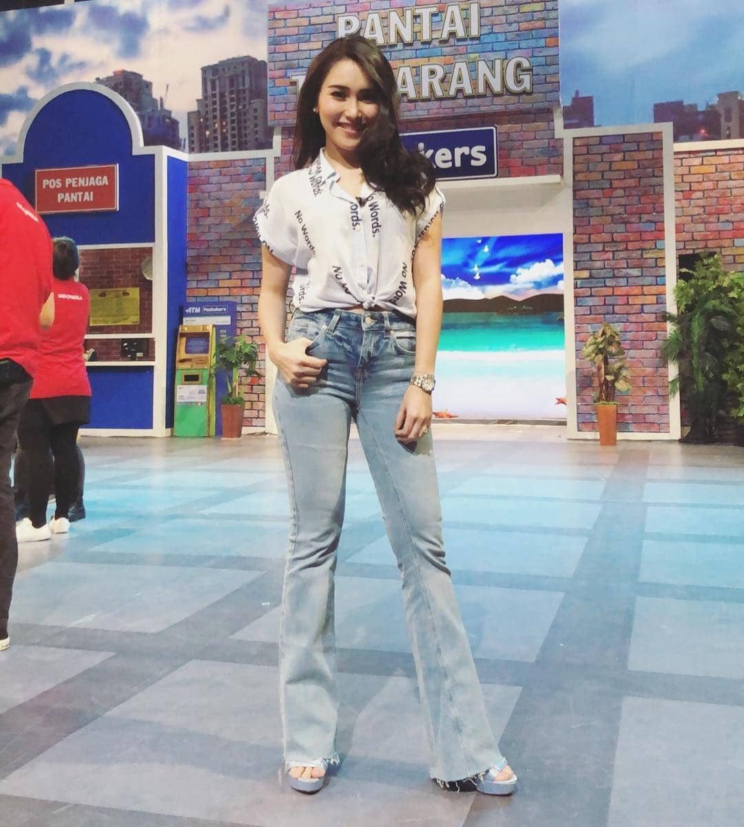 7. Simple tapi keren! Kalau yang ini Ayu memadukan crop top, celana jeans serta tambahan aksesoris heels dan jam tangan