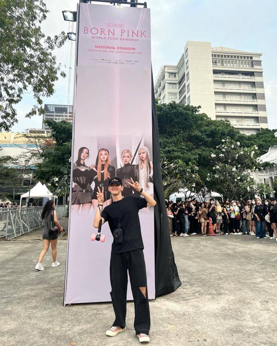7. Tampil modis namun tetap nyaman saat nonton konser BLACKPINK, Mike tampil serba hitam dengan memadukan t-shirt, ripped jeans dan topi