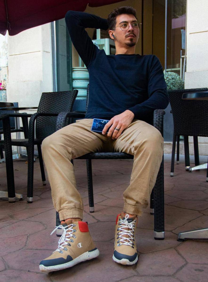 10. Simple dan effortless, perpaduan long sleeve t-shirt, jogger pants, dan high top sneakers. Cocok buat pria yang anti ribet