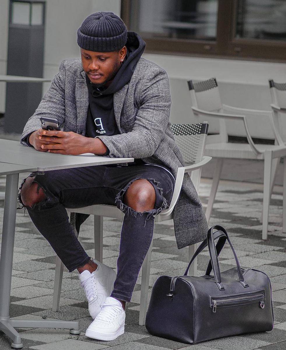 7. Hoodie, long coat, dan beanie hat juga kerap dikenakan saat musim dingin. Tambahkan ripped jeans dan sneakers