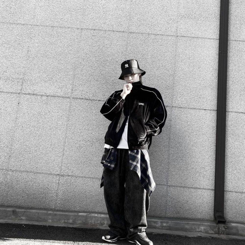 1. Set yang terdiri dari outer dan celana baggy tidak pernah tidak catchy. Seperti Minhyuk, kalian juga bisa tambahkan beanie!