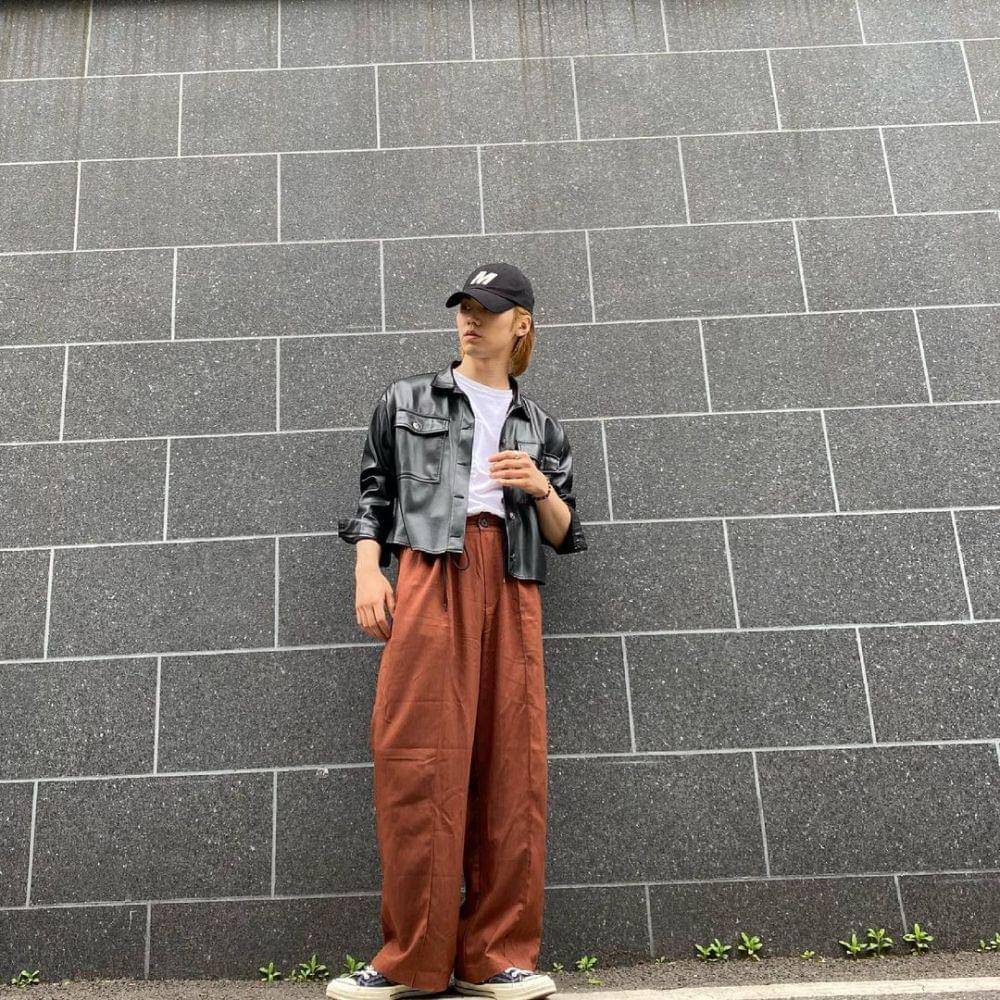 7. Ingin yang berkesan lebih edgy? Jaket kulit jadi kuncinya. Seperti Min Hyuk, cukup padukan dengan kaus putih juga celana baggy