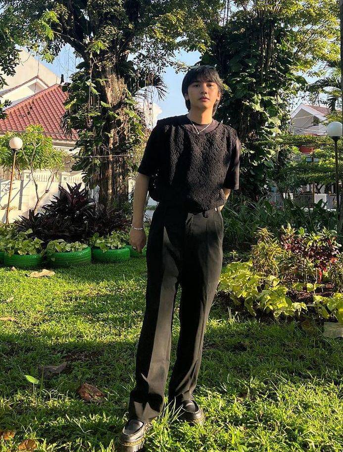 8. Ada Ari Irham yang memadukan kemeja warna biru muda dengan vest hitam serta cargo pants hitam, stylish banget!