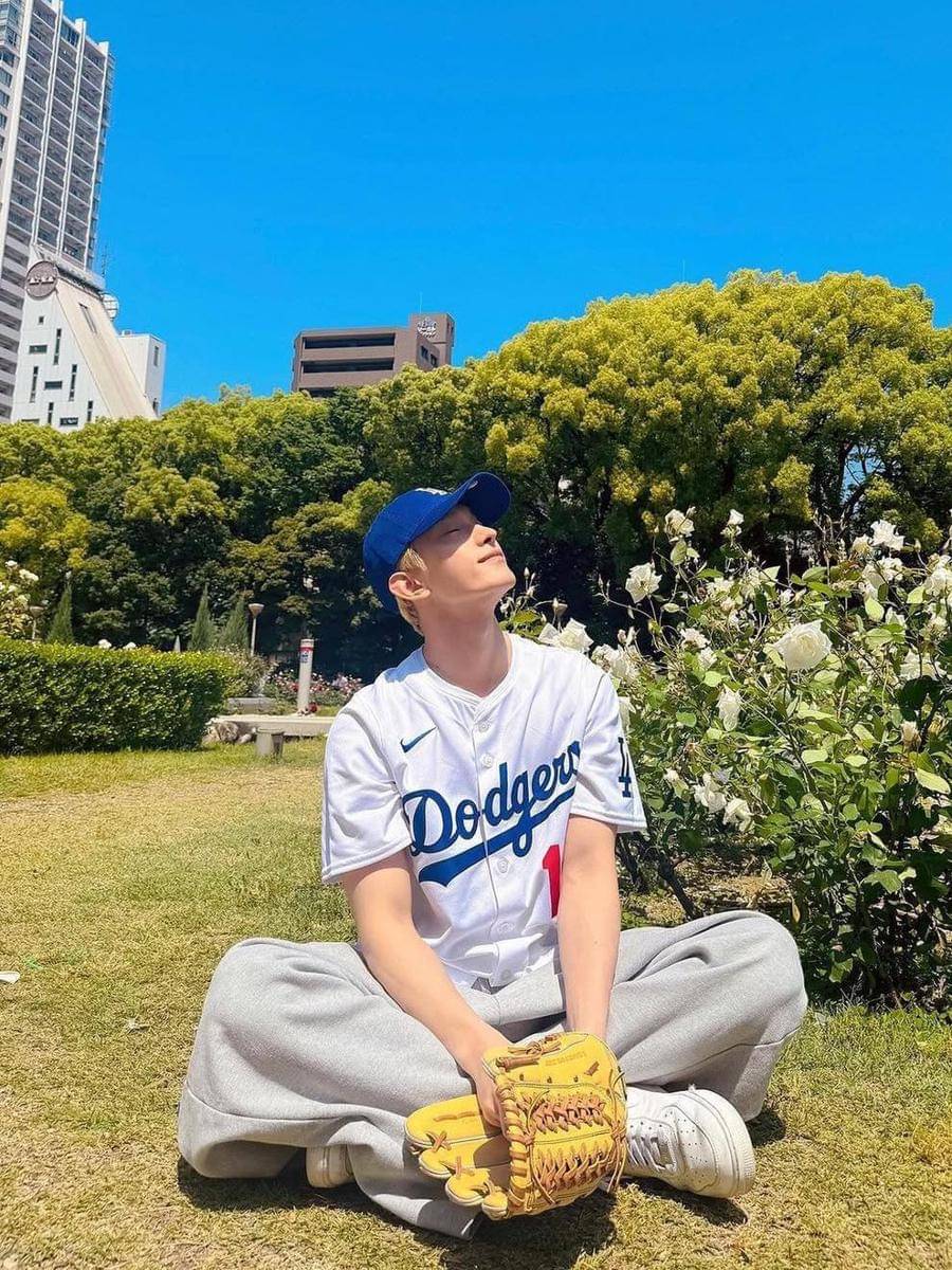 6. Selain atasan, DK kombinasikan baggy sweatpants abu-abu dengan baseball jersey, sneakers, dan cap senada. Fresh abis!
