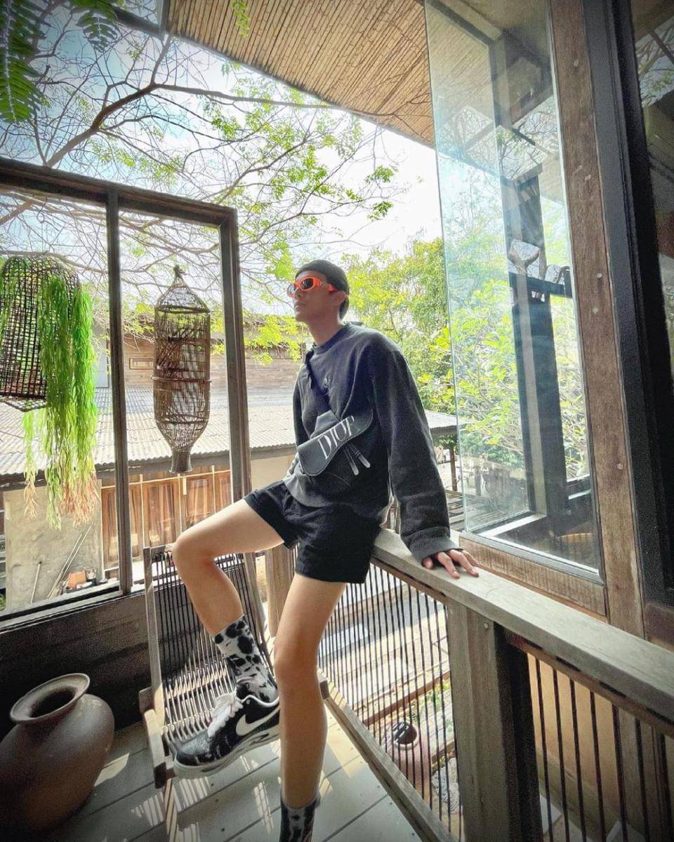 6. Liburan mendaki gunung, OOTD Hsu Thassapak tampak effortless dengan setelan t-shirt dan short pants warna hitam. Cowok mamba banget!