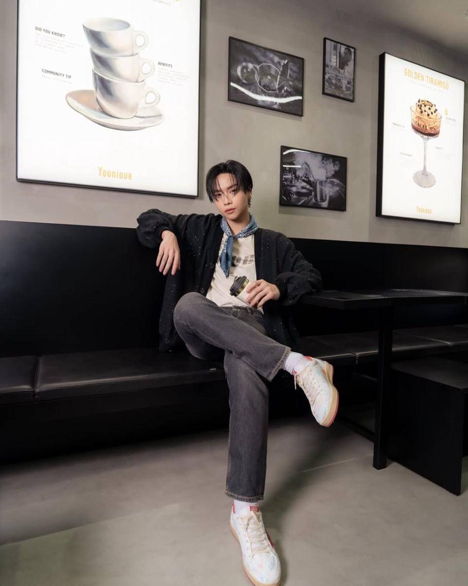 3. Kenakan t-shirt, hoodie, dan baggy pants nuansa hitam. Jungt maksimalkan gayanya dengan white sneakers favoritnya