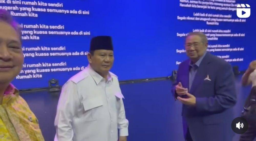 Usai dukungan Demokrat secara resmi dideklarasikan Ketua Umum, Agus Harimurti Yudhoyono (AHY), giliran Susilo Bambang Yudhoyono (SBY) yang memberikan semangat pada Prabowo Subianto.