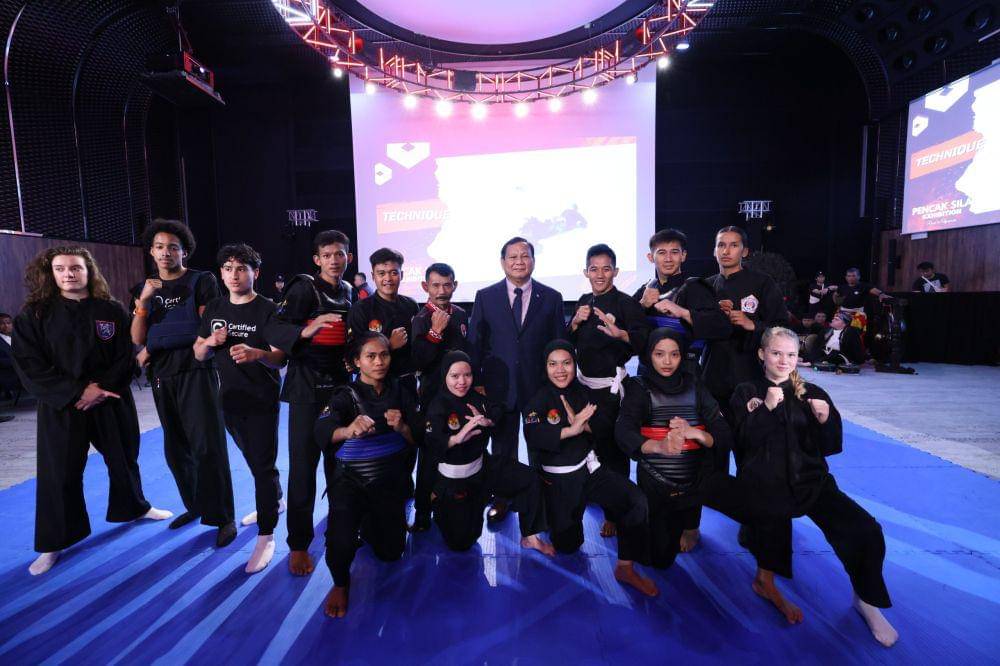 Pada kesempatan tersebut, Prabowo memberikan semangat untuk para atlet nasional maupun luar negeri seusai mereka unjuk kemampuannya bersilat.