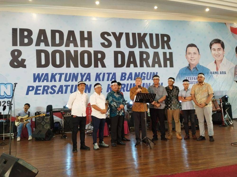 Jakarta, IDN Times - Relawan pendukung Prabowo-Gibran, Sahabat Bang Ara (Maruar Sirait) menggelar acara syukuran kemenangan yang dibarengi dengan donor darah.