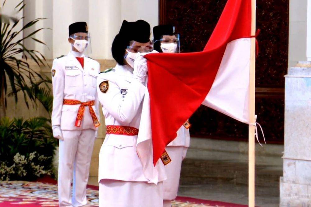 "Dengan memohon ridho Allah Yang Maha Kuasa. Pada hari ini, saya mengukuhkan saudara-saudara sebagai Pengibar bendera Pusaka yang akan bertugas di Istana Negara pada tanggal 17 Agustus 2020," kata Jokowi.