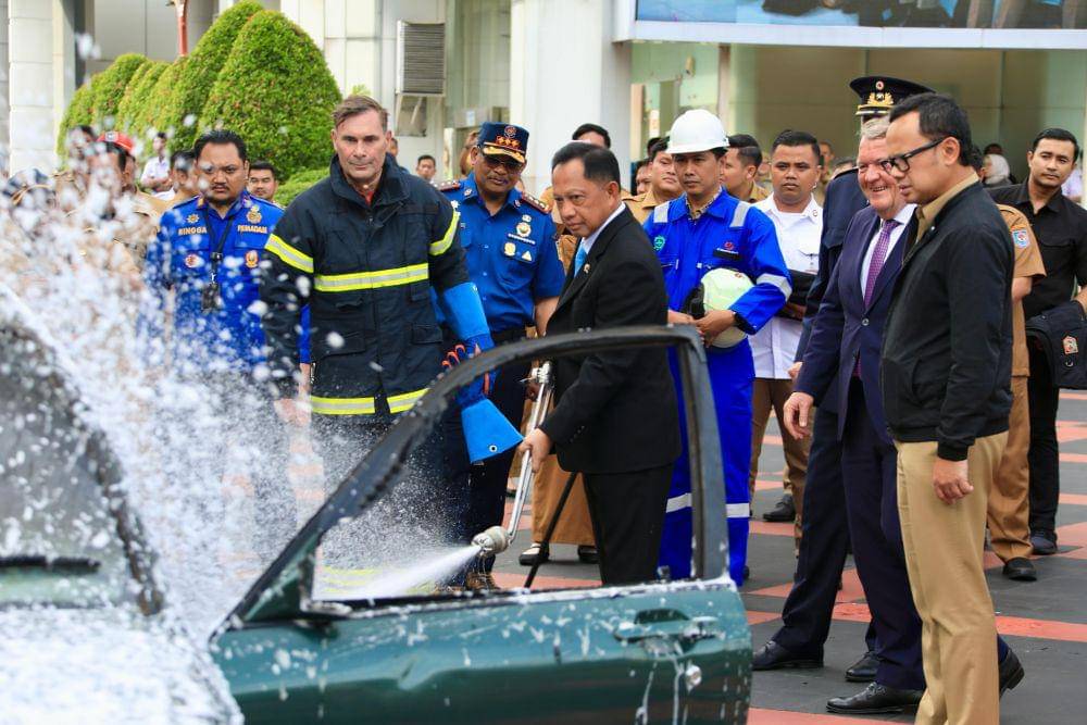 Pada pertemuan tersebut, Mendagri menyaksikan demonstrasi penggunaan teknologi Firexpress, yakni sistem pemadam kebakaran bertekanan tinggi asal Denmark.