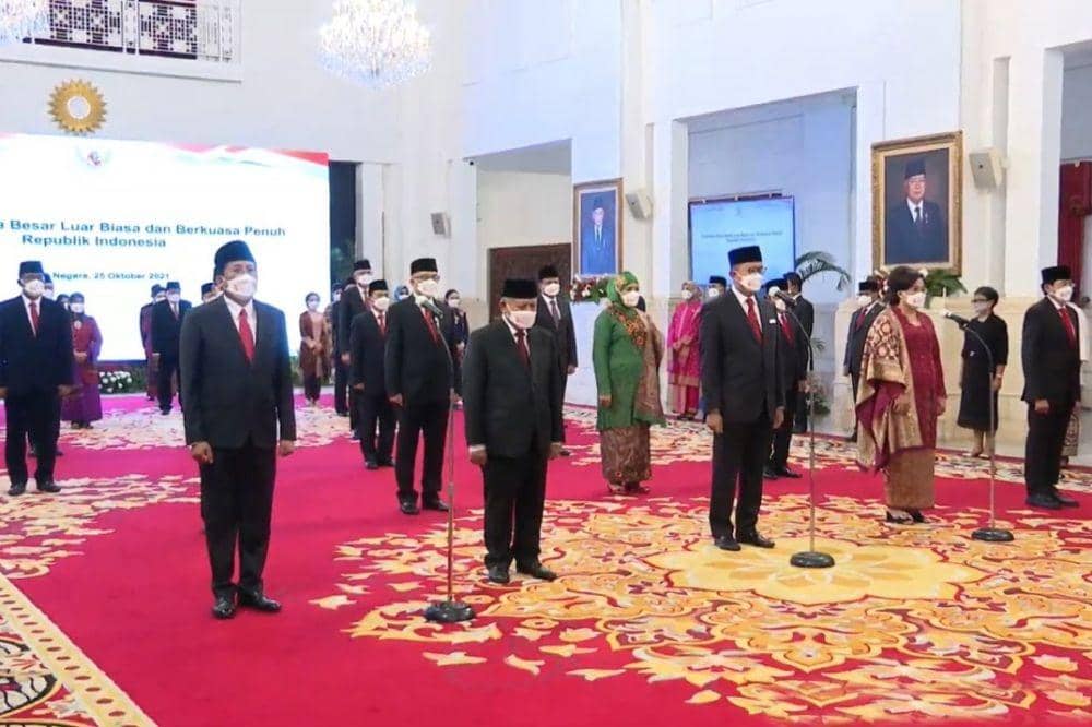 Pelantikan hari ini berdasarkan Keputusan Presiden Nomor 127/P/2021 tentang Pengangkatan Duta Besar Luar biasa dan Berkuasa Penuh Republik Indonesia.