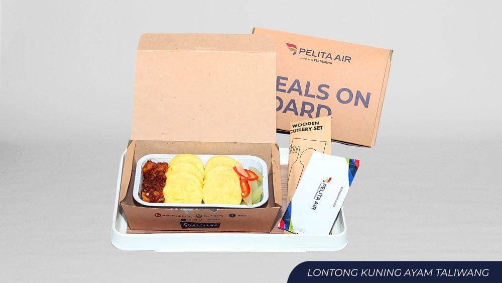 Saat perjalanan menuju Lombok, Pelita Air menyuguhkan makanan bercita rasa lokal kepada para duta besar, yakni nasi daun jeruk empal kekep dan lontong kuning ayam taliwang.