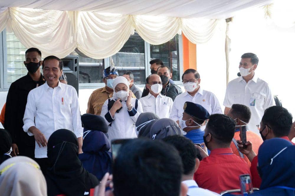 Jakarta, IDN Times - Presiden RI Joko Widodo didampingi Menteri Ketenagakerjaan Ida Fauziyah dan Direktur Utama BPJS Ketenagakerjaan (BPJamsostek) Anggoro Eko Cahyo menyerahkan Bantuan Subsidi Upah (BSU) kepada pekerja di Kota Baubau dan di Kabupaten Buton.