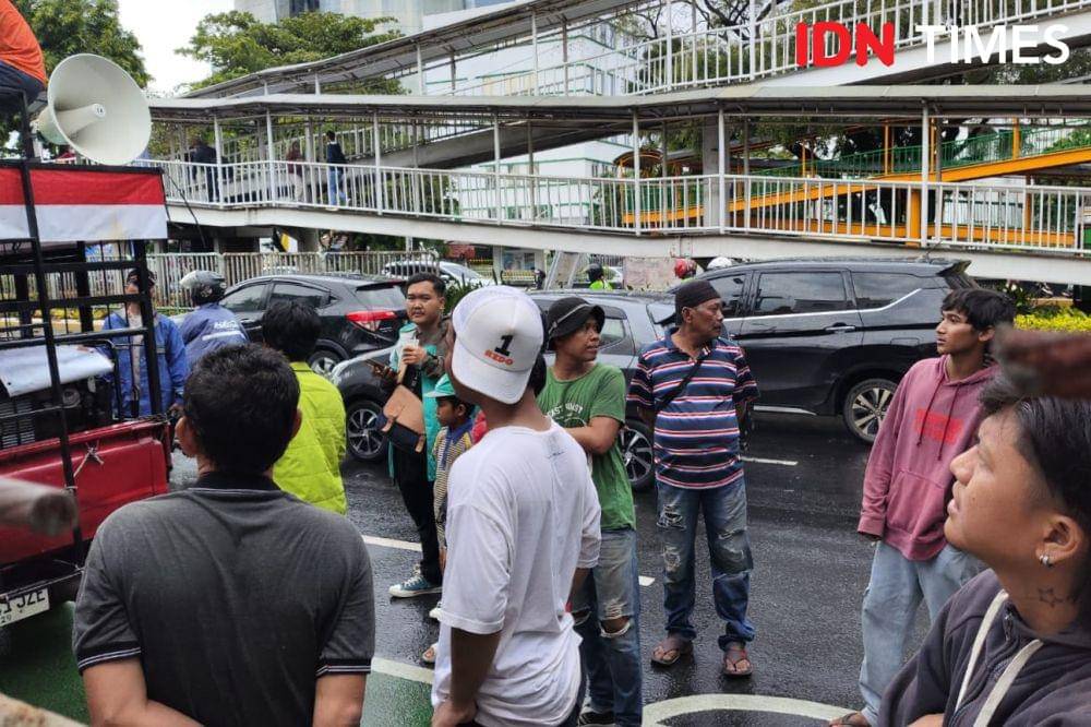 Pantauan IDN Times di lokasi, massa tiba sekitar pukul 14.10 WIB. Mereka datang dengan menaiki tujuh angkutan kota (angkot).
