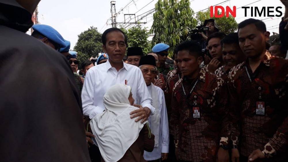 Jakarta, IDN Times - Calon presiden dan wakil presiden nomor urut 01, Joko 'Jokowi' Widodo-Ma'ruf Amin menyampaikan pidato kemenangannya di kawasan Kampung Deret, Tanah Tinggi, Jakarta Pusat, Selasa (21/5).