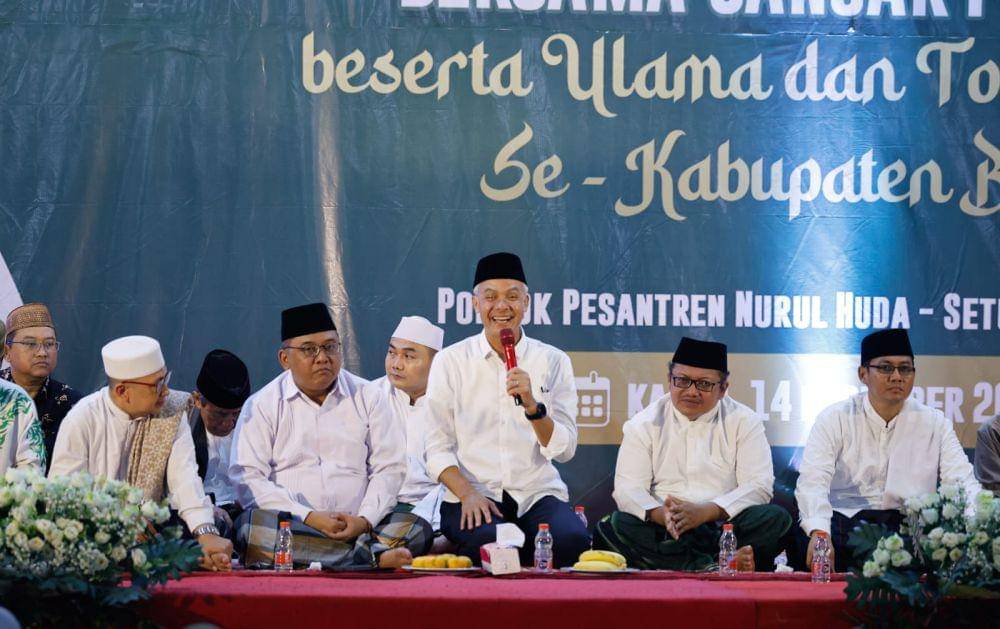 “Pak Ganjar tenang saja, di sini ada para santri yang akan selalu mendoakan Pak Ganjar. Enggak usah kita khawatir dengan survei, Insyallah para santri akan selalu bersama Pak Ganjar,” kata Atok Romli.