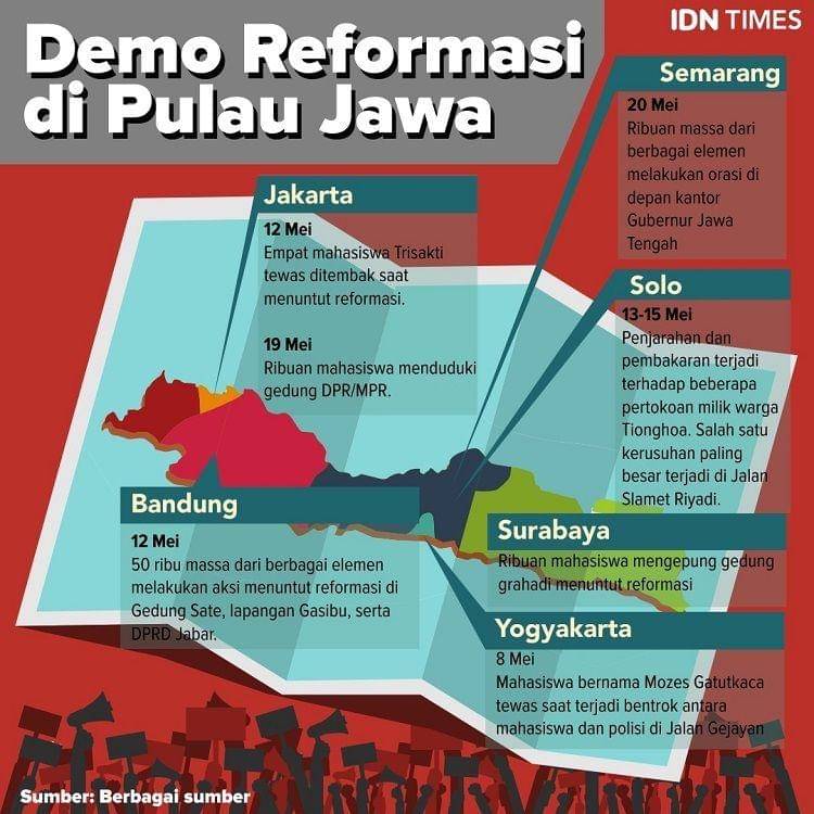 Jakarta, IDN Times - Masa pelengseran Presiden Soeharto 25 tahun silam menyisakan sejarah kelam Indonesia. Masyarakat kini mengenalnya dengan peristiwa Tragedi Mei 1998. Kala itu, ribuan mahasiswa berdemonstrasi untuk menurunkan Soeharto.