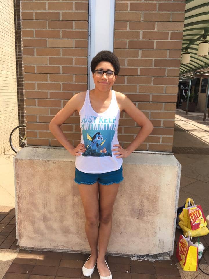 Musim panas saat ini terjadi di Amerika Serikat. Tentu saja wajar bila seseorang ingin berpakaian senyaman mungkin ketika sedang mengisi waktu luang, termasuk Pewee. Saat itu ia memakai sebuah tank top berwarna putih dengan gambar film Finding Nemo dan sebuah celana pendek seperti yang terlihat di atas.