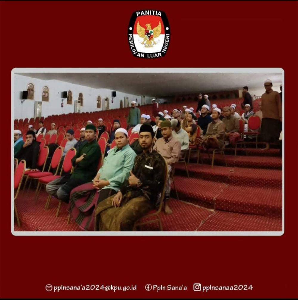 5. Sosialisasi kepada pemilih di TPSLN 05 di Universitas Al-Ahgaff Putri Mukalla setelah rapat pemungutan suara dibuka