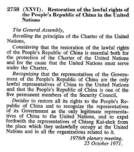 Salah interpretasi terhadap resolusi ini muncul dalam Pernyataan Bersama Indonesia-China, dan menyangkut status dari Taiwan. Seperti apa salah interprestasi yang dimaksudkan pernyataan TETO ini?