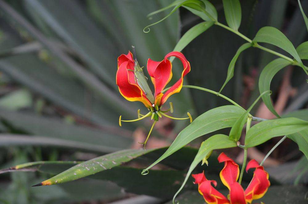 Fire lily (Gloriosa superba) dikenal dengan kelopaknya yang melengkung ke belakang seperti lidah api. Warna merah oranye hingga kuning terang membuatnya terlihat mencolok di antara tanaman lainnya. Tak heran jika bunga ini sering digunakan sebagai tanaman hias di berbagai negara.