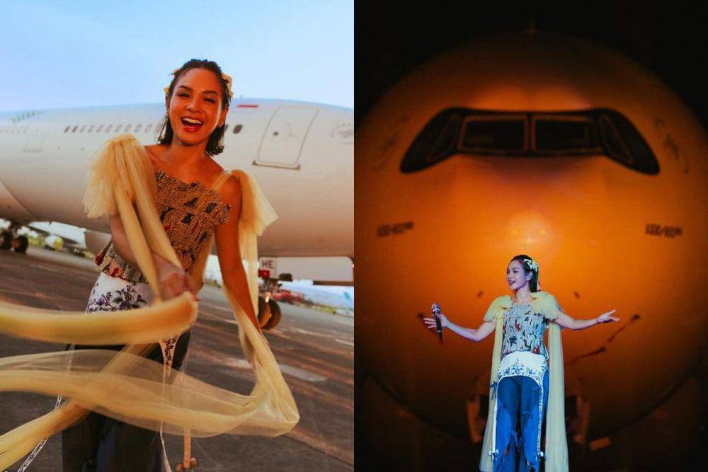 7 Momen Andien Tampil Nyanyi di Hanggar Berlatarkan Pesawat, Unik!