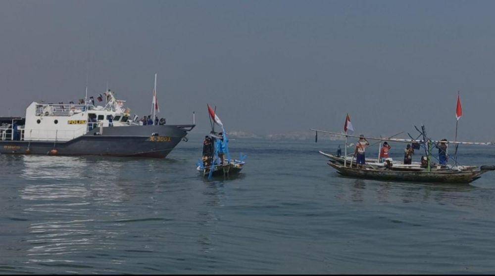 Nelayan dan Polairud Polda Jatim Upacara di Bawah Jembatan Suramadu