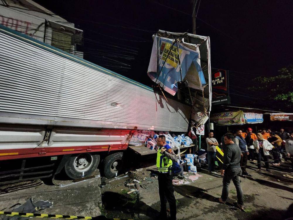 Truk Tronton Alami Rem Blong dan Terguling di Sibolangit