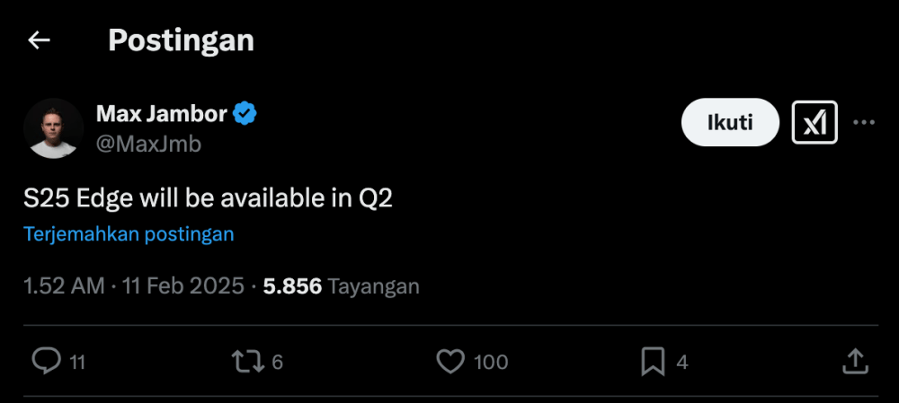 Meski jadwal rilisnya mulai terungkap, spesifikasi dan harga resminya masih menjadi tanda tanya. Apakah Samsung Galaxy S25 Edge akan menjadi pilihan menarik bagi kamu yang ingin mendambakan flagship ringan dengan desain premium? Mari tunggu saja pengumuman resminya dalam beberapa bulan mendatang, ya!