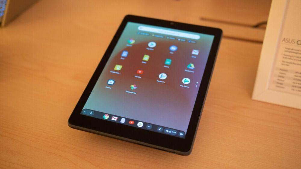 Pada CES 2019, Asus meluncurkan CT100 – tablet berbasis Chrome OS pertama dari mereka. Tablet yang ditargetkan untuk pasar pendidikan ini, memiliki layar 9,7 inch beresolusi 2,048 x 1,536, bersama dengan prosesor OP1, RAM 4GB, penyimpanan internal 32GB dan baterai 35Wh. Tablet ini juga telah dibekali dengan satu kamera belakang berkekuatan 5MP dan satu kamera depan berkekuatan 2MP.