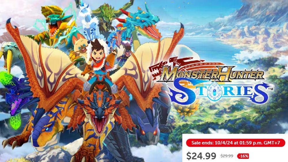 - Monster Hunter Stories diskon 16%, dari $29,99 menjadi $24,99 di My Nintendo Store