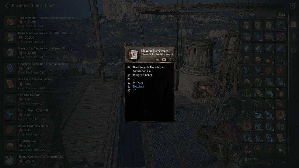 Dungeon Special untuk cave 5 dan 6 butuh yang namanya Masarta Ice Cavern Cave Ticket. Jika sudah memiliki CP atau character power yang memadai, kamu bisa memasuki kedua cave tersebut. Namun, untuk memasukinya, kamu butuh tiket sesuai dengan nomor cave itu sendiri. Cara mendapatkannya cukup fleksibel, kamu bisa farming di Dungeon Special 1—4 atau membelinya di Battlefront Merchant.