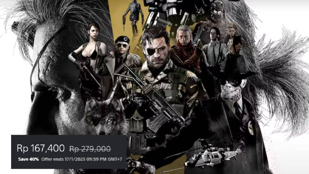 Game ini menceritakan upaya Big Boss, yang kini disebut Venom Snake, untuk membalas dendam atas kehancuran pasukan MSF yang ia dirikan di tangan XOF yang dipimpin Skull Face. Tertarik? Versi Metal Gear Solid V: The Definitive Experience sedang diskon 40 persen di PlayStation Store. Dari harga awal Rp279 ribu kini jadi Rp167 ribu. Versi Definitive Experience ini sudah termasuk game prolog Metal Gear Solid V: Ground Zeroes (2014) dan lebih dari 30 download content (DLC) tambahan.