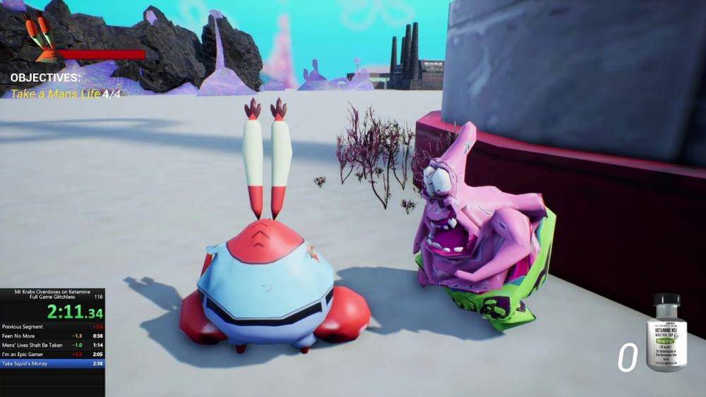 Game ini menceritakan Mr. Krabs yang kecanduan ketamine, sejenis obat bius. Mr. Krabs harus melakukan berbagai cara untuk bisa memenuhi adiksinya tersebut. Ini adalah game parodi gelap dari kartun anak-anak. Di dalamnya penuh dengan unsur kekerasan dan hal sensitif lain. Game ini mengubah Bikini Bottom menjadi sebuah kota kriminal yang penuh dengan bandar ketamine. Game ini ada di web itch.io ThrillDaWill.