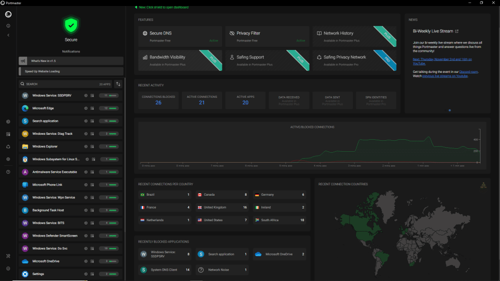 Portmaster merupakan aplikasi firewall modern yang menekankan kontrol dan transparansi pengguna dalam mengelola lalu lintas jaringan. Aplikasi ini menyediakan log terperinci dari semua upaya koneksi, sehingga pengguna bisa memantau lalu lintas yang masuk dan keluar dengan lebih presisi. Aplikasi ini juga dirancang dengan privasi sebagai fokus utama dan menyertakan beberapa fitur yang dapat membantu pengguna mengidentifikasi dan memblokir koneksi yang berpotensi berbahaya.