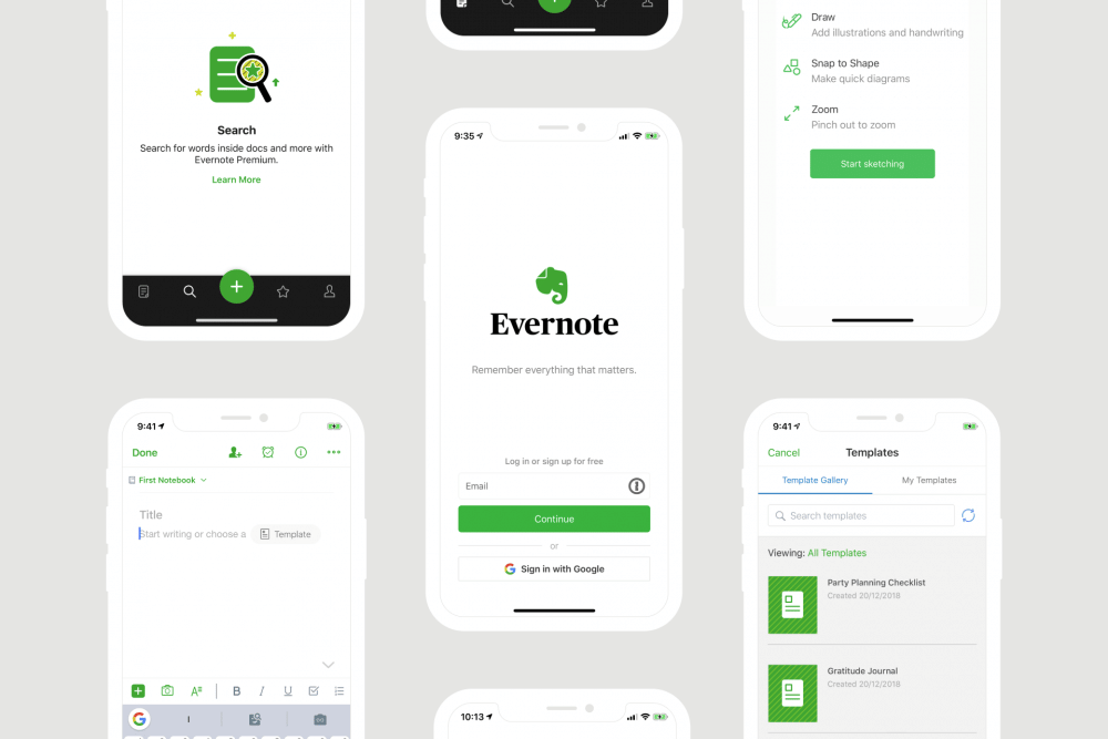 Kelebihan dari Evernote adalah kamu bisa menyinkronkannya di berbagai perangkat. Ada juga template catatan yang bisa kamu download jika kamu bosan dengan latar belakang yang itu-itu saja.