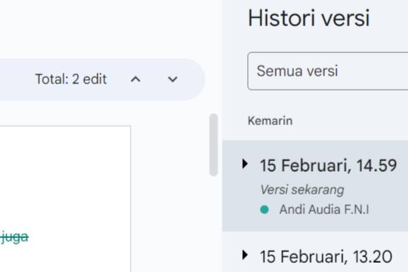 Bagusnya lagi dari fitur ini adalah tidak hanya bisa melihat histori edit, kamu juga bisa mengembalikan hal yang diedit. Misalnya, saat kerja kelompok, kamu tidak menginginkan ada teks yang dihapus, maka kamu bisa mengembalikan hal yang dihapus itu. Jadi, jika ada teman kelompoknya yang tidak sengaja menghapus bagian kerja kamu, maka bagian tersebut dapat dipulihkan.