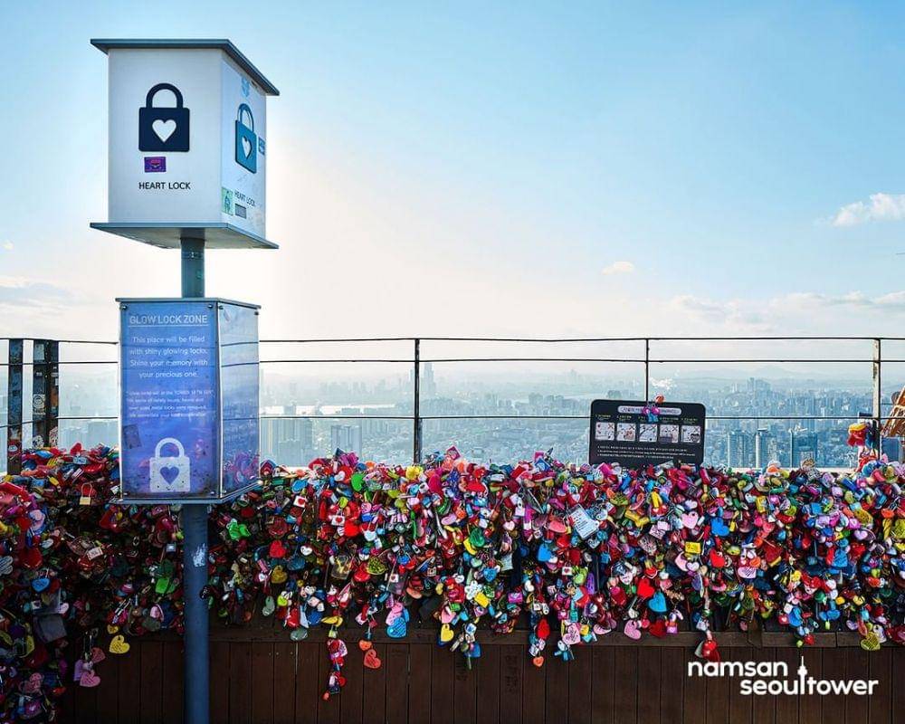 Para pengunjung bisa datang ke Namsan Tower ini dengan menggunakan kereta gantung. Selain menikmati pemandangan Seoul dari atas, pengunjung bisa memasang gembok cinta, melihat cahaya warna-warni di menara, berfoto, dan makan di restoran.