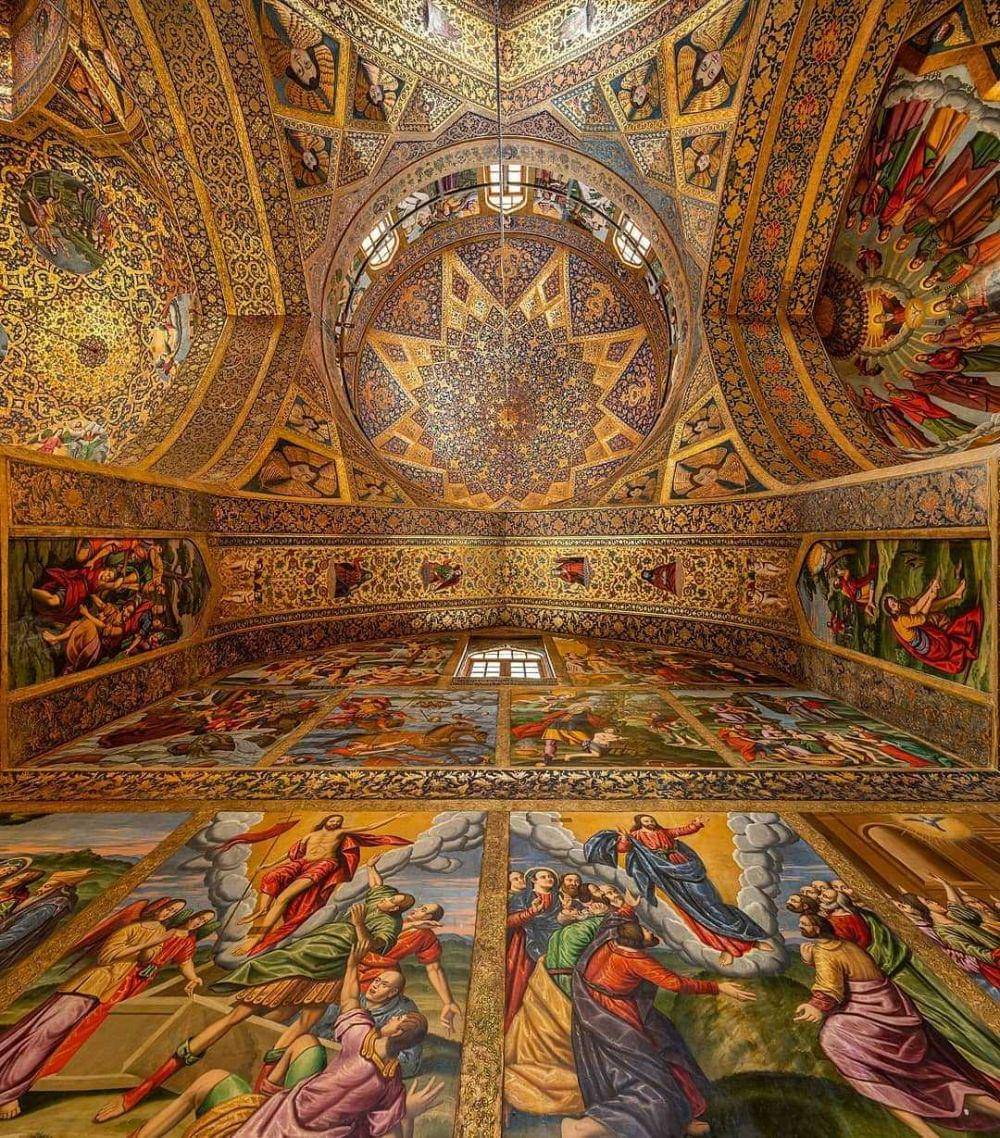 Di dalamnya terdapat lukisan-lukisan dinding yang indah. Lukisan yang menggambarkan cerita dalam kitab suci tersebut dilukis oleh seorang seniman dari Armenia pada era Dinasti Shafawi.