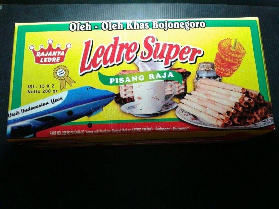 Ledre merupakan salah satu makanan khas Bojonegoro. Uniknya penamaan ledre tersebut berasal dari proses melembutkan dengan membentuk lembaran-lembaran pipih yang disebut "Ngeledre". Bahan utama yang digunakan, yaitu Pisang Raja. Terdapat beberapa varian rasa dari ledre, antara lain rasa original, rasa cokelat, rasa durian, dan rasa stroberi. Oleh-oleh khas Bojonegoro dapat dibeli dengan harga yang relatif terjangkau dan ramah di kantong, lho!