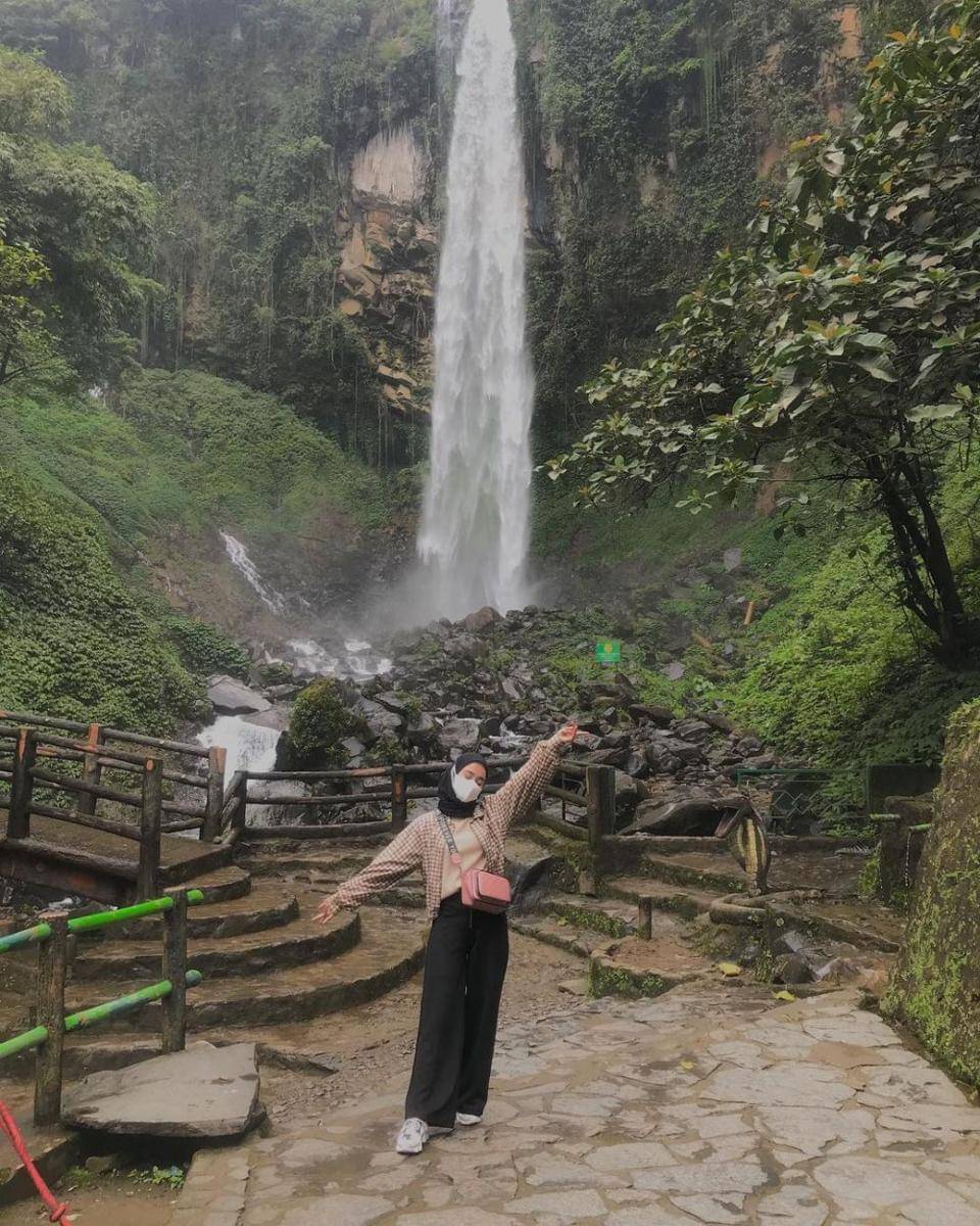 Keindahan air terjun yang dikelilingi hijaunya pohon ini sering dijadikan latar belakang foto untuk pengunjung. Suara air terjun yang mengalir bersama suasana yang sejuk juga membuat pengunjung betah berlama-lama.