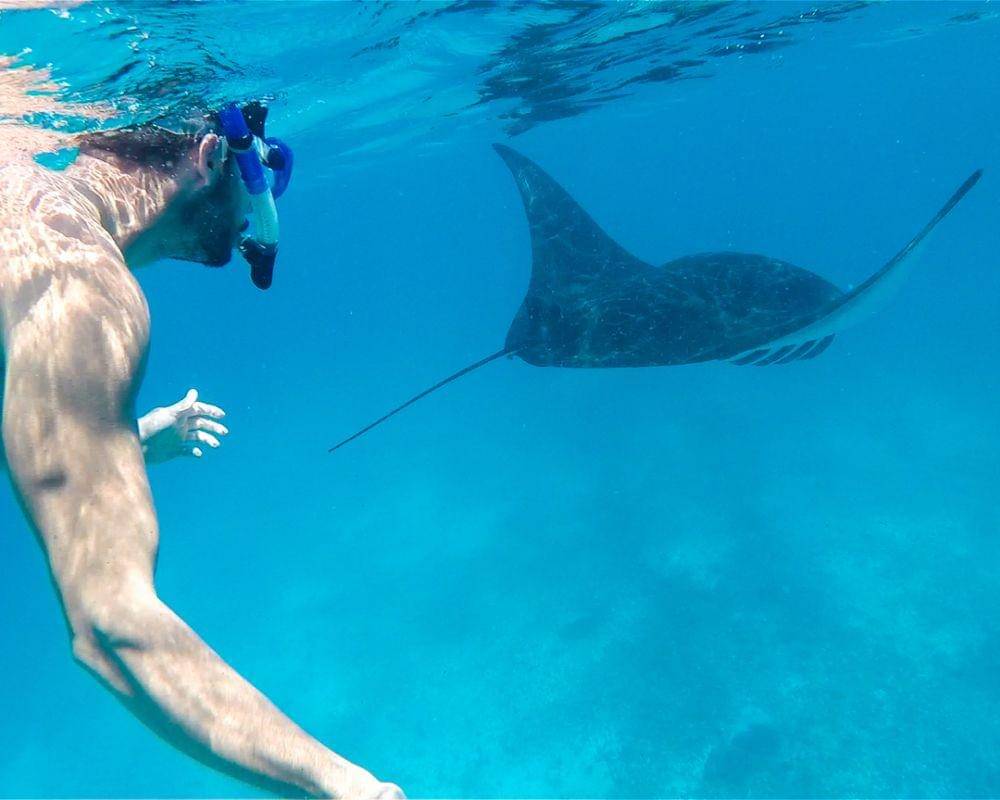 3. Panorama bawah laut kawasan ini gak perlu diragukan lagi. Cobalah diving di Manta Point, kamu bisa menyelam bersama ikan pari raksasa