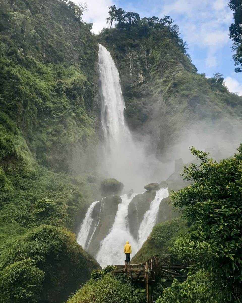 Sayangnya, wisatawan tak diperkenankan untuk bermain langsung di sekitar air terjun sebab dinilai sangat berbahaya.
