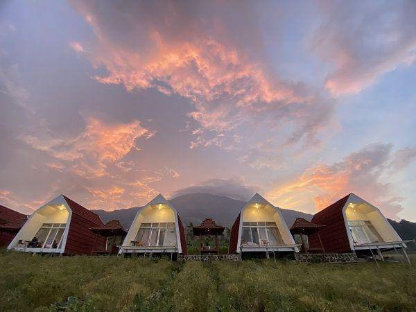 Bukan berupa tenda, glamping Magelang ini berbentuk bangunan trapesium dengan fasilitas lengkap. Di sini, terdapat beberapa tipe kamar, seperti Krincing Room dan Sumbing Room yang berbeda pada kapasitas dan harganya.