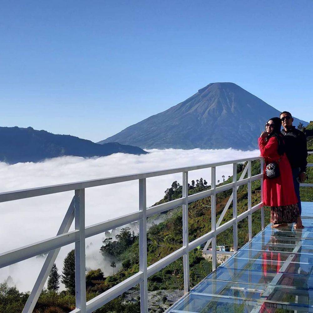 Kamu bisa menikmati keindahan tersebut dengan mengunjungi Batu Angkruk. Batu Angkruk di Dieng merupakan salah satu wisata terbaru yang memadukan pemandangan alam dengan spot kekinian.