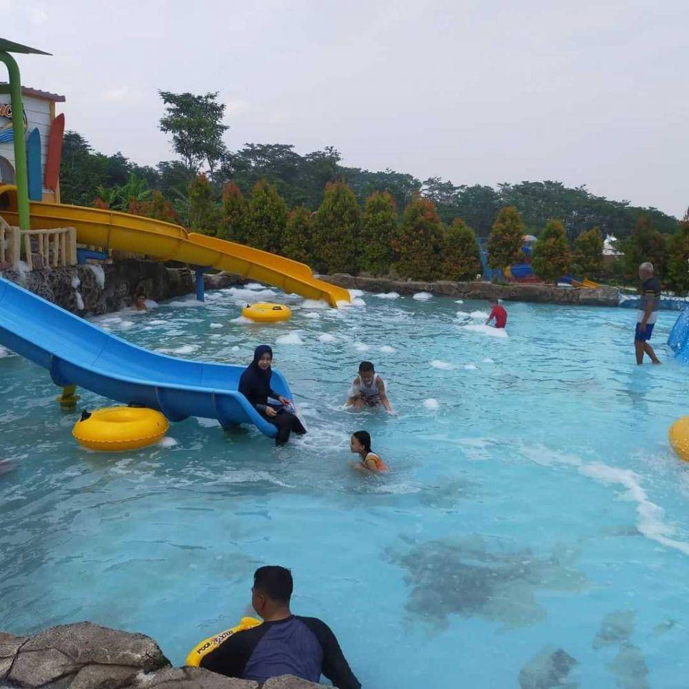 Kamu bisa bermain air di wahana waterpark ini bersama keluarga, teman, atau pasangan.