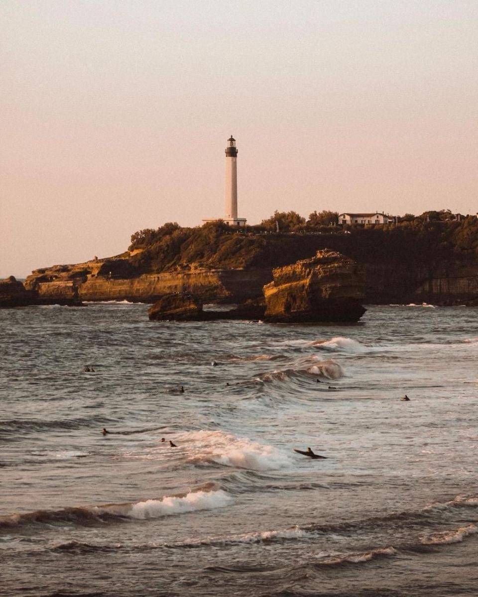 2. Dibingkai oleh serangkaian batu-batu kasar, Cote des Basques Beach menyajikan pemandangan indah pantai berpasir yang luas dan laut biru dengan ombak kuat