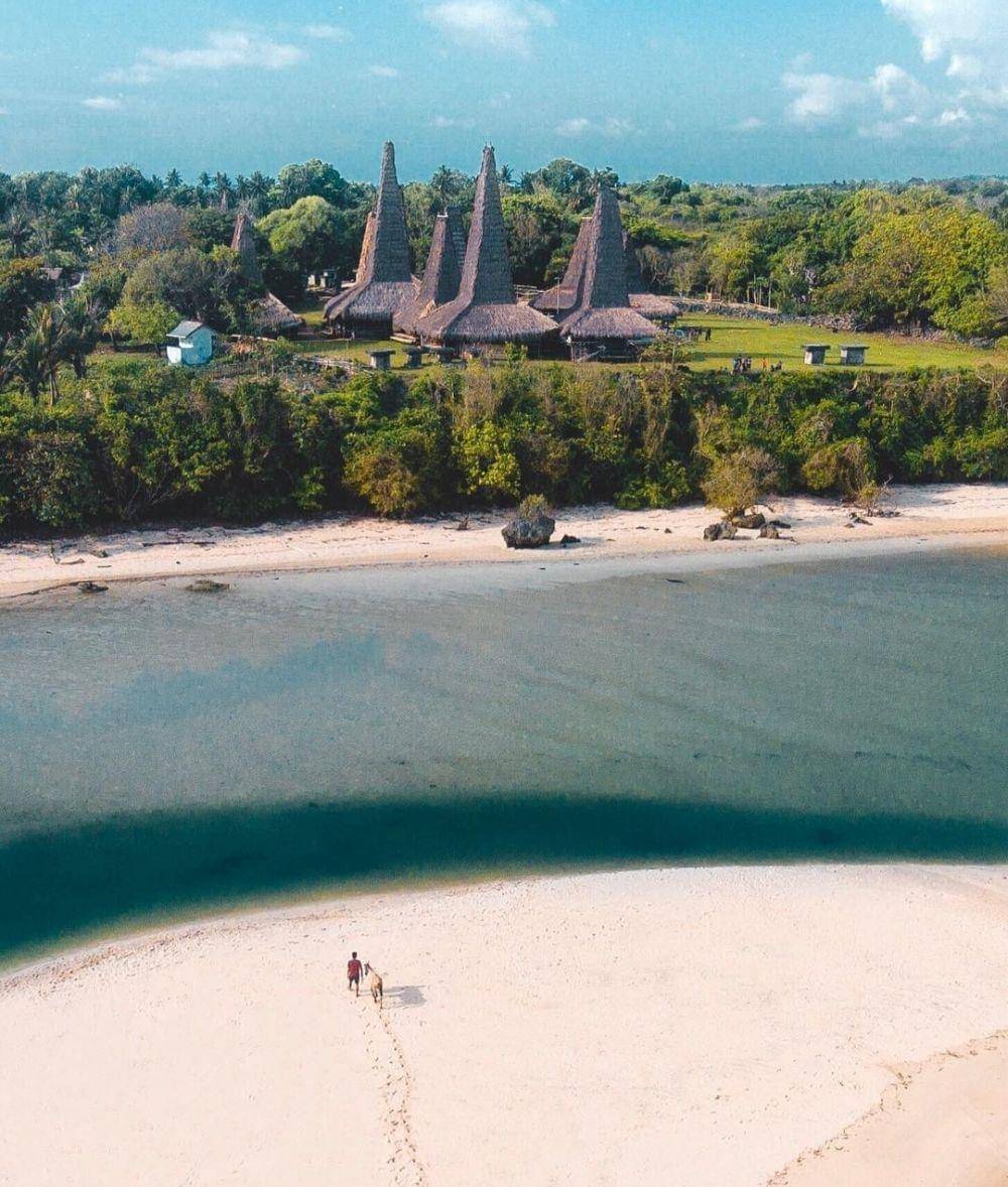 4. Di area pantai terlihat puncak-puncak rumah adat kampung Ratenggaro di seberang sungai