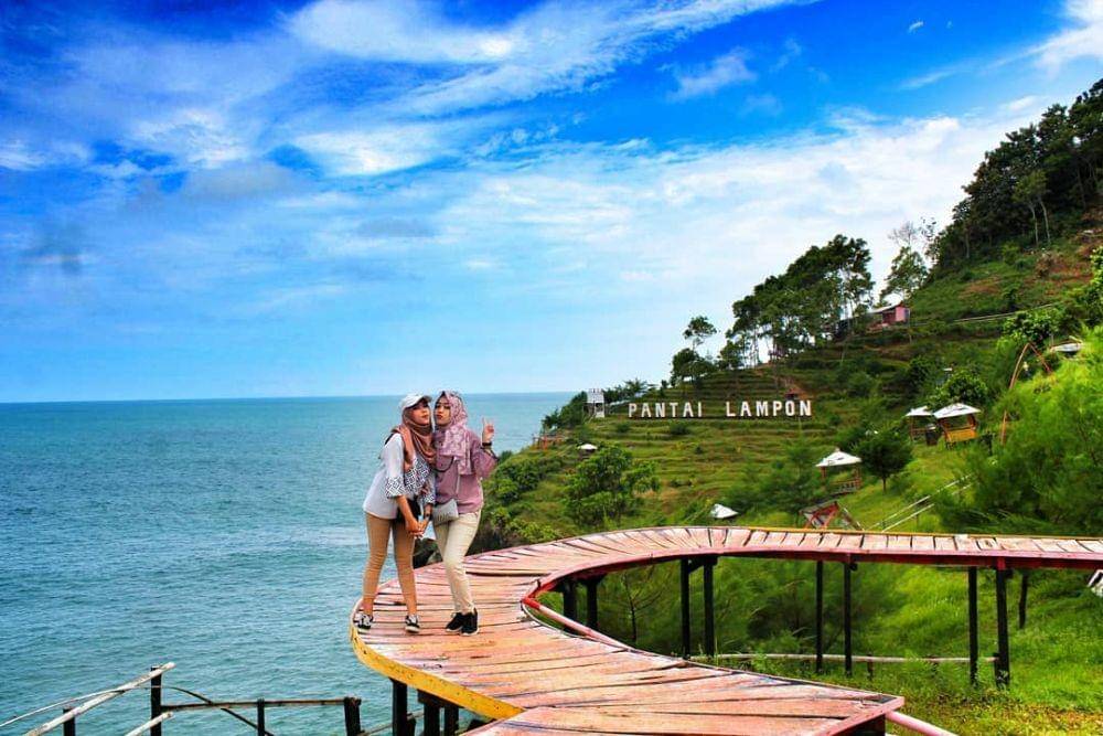 Kalau ingin mendengar desiran suara ombak yang menghantam karang dengan lebih jelas, mampir saja ke Pantai Lampon di Kebumen. Layaknya pantai pribadi, kamu bisa menikmati suasana hangat sembari menikmati panorama laut yang indah tanpa kebisingan. Dataran hijau yang mengelilingi pantai tampak begitu memukau.